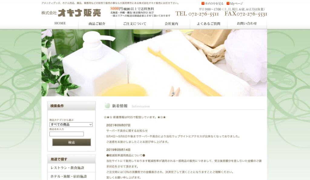 前回10年ほど前にECサイトを弊社にて制作しましたオキナ販売様(アメニティグッズの販売)よりリニューアルのご相談を受け、2022年10月にECサイトリニューアルをし公開しました。
